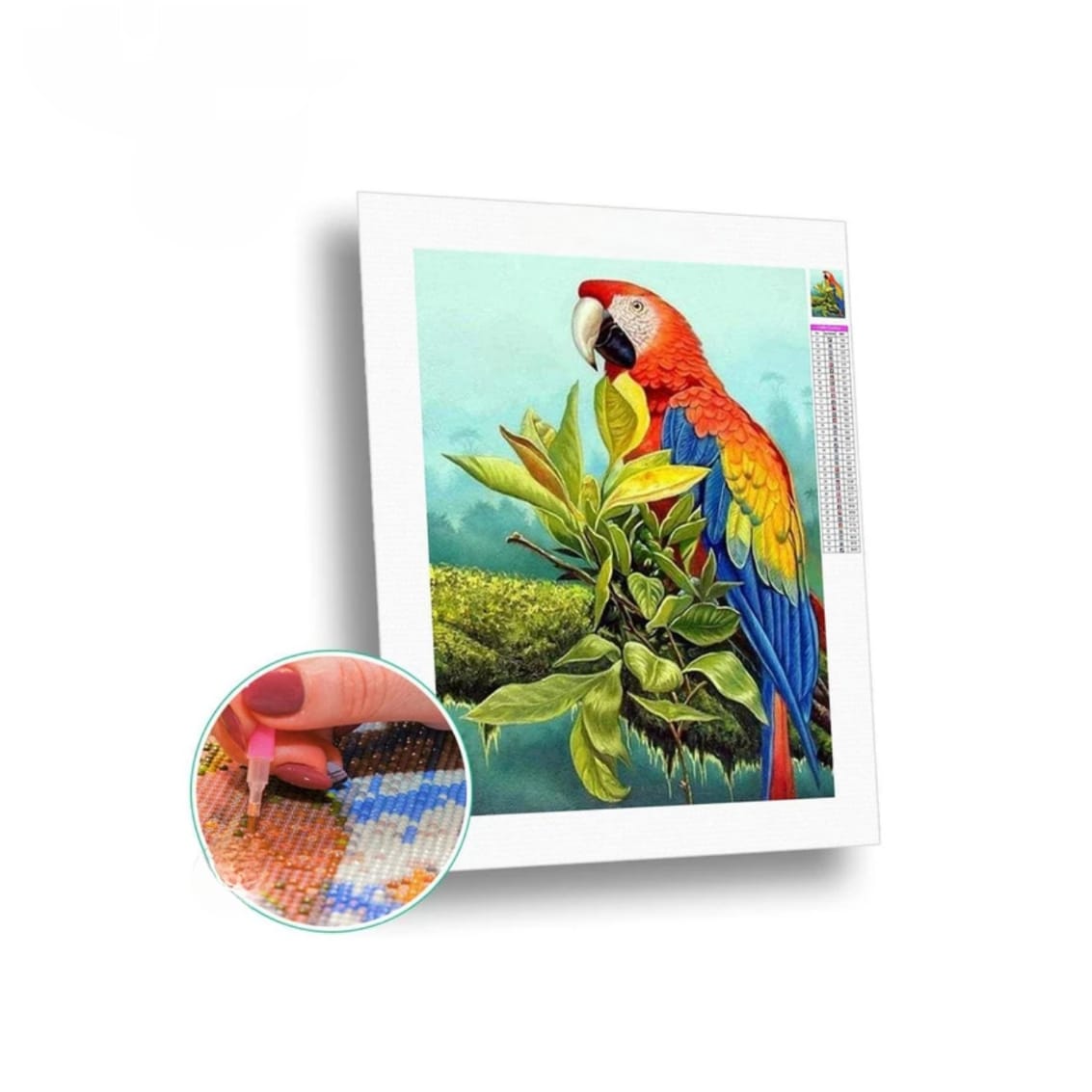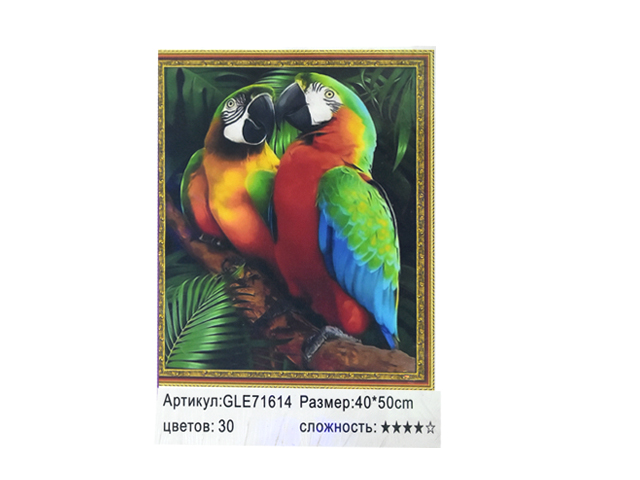 В набор входит: холст-основа с клеевым слоем на подрамнике, алмазы из древесной смолы всех необходимых цветов (упакованные в отдельные пакетики), инструкция с условными обозначениями, специальная ручка-стилус, лоточек (на нем удобно переворачивать стразы нужной стороной)