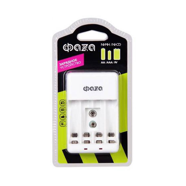 кв_Зарядное устройство ФАZА В-55А 4шт. R03/06, 9V, индикатор, складная вилка, BL1 (1/20) 1024305Поддержка аккумуляторов: Ni-MH, Ni-Cd
