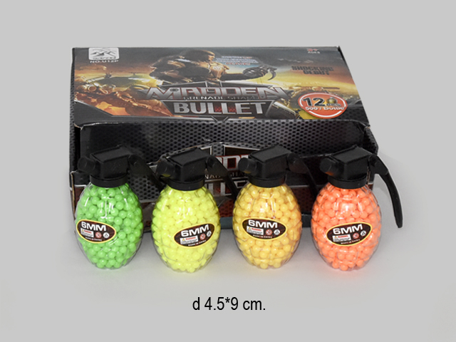 - Пульки для пистолетов арт. 12-UP-209-802 "Граната 500" (12шт.) в кор.+**×Пульки для пистолетов арт. 12-UP-209-802 "Граната 500" (12шт.) в кор.+**Пули пластиковые для детского оружия в бутылочке с дозатором. При нажатии на ручку открывается заслонка горлышка. В упаковке 500 пластиковых пулек диаметром 6 мм.