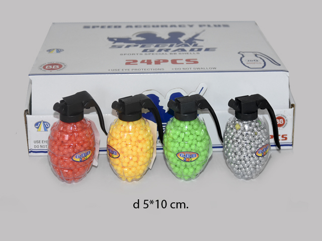 - Пульки для пистолетов арт. JDQ "Граната 800" (24шт.) в кор._×Пульки для пистолетов арт. JDQ "Граната 800" (24шт.) в кор._Пули пластиковые для детского оружия в бутылочке с дозатором. При нажатии на ручку открывается заслонка горлышка. В упаковке 800 пластиковых пулек диаметром 6 мм.
