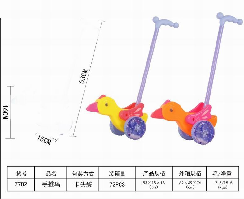 Каталка арт. 7782 Утка с ручкой в пак. 53*16*15