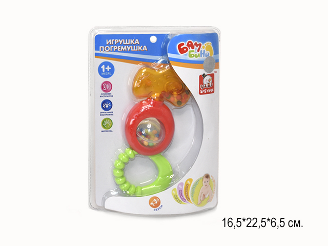 - Погремушка арт. 1494 На листе_×Погремушка арт. 1494 На листе_Особенностью этой погремушки-прорезывателя является ее особый неповерхностный способ окрашивания, безопасный для малыша. Погремушка имеет приятную расцветку и гладкие контуры. Посредством игры с погремушкой развивается мелкая моторика и воображение.