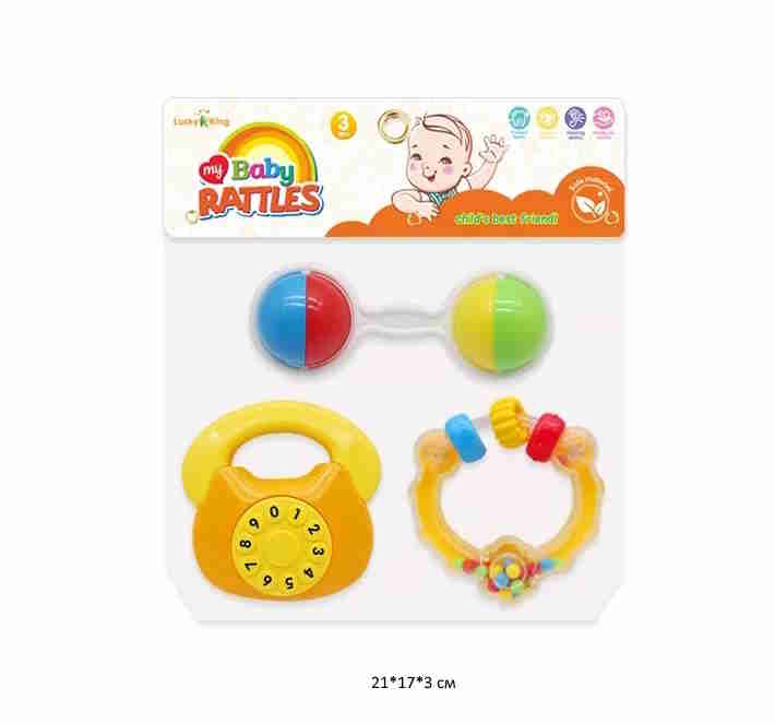 Первая игрушка малыша - это погремушка. Набор состоит из разных погремушек, с помощью которых малыш знакомится со звуками, формами, цветами. Набор развивает у ребёнка слуховое, зрительное и тактильное восприятие. Звук появляется при встряхивании.
