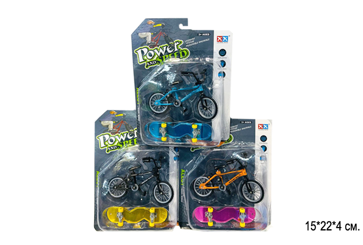 Скейтик арт. 55020-5 Пальчиковый с велосипедом на листе• /240 шт./