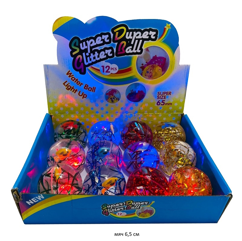 Мяч каучук. арт. 2557-5 Прозрачный рыбка, дождик, свет 6,5 см (12 шт.) шоубокс•