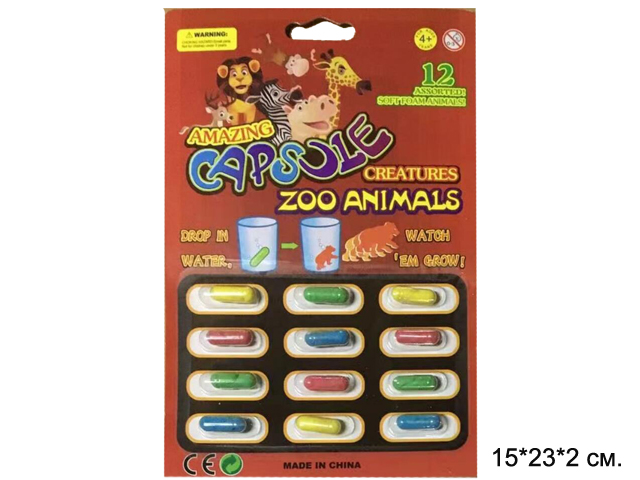 Игрушка растущая арт. HY1517-12" Дикие животные 12шт. на листе 23*15*2