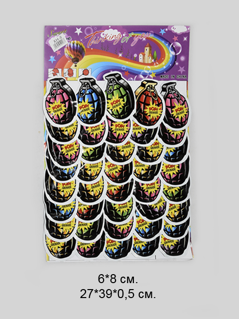 - Бомбочки арт.1927-1/3-40B-805 "Гранаты" лимонки цветные 40 шт. на листе_+×Бомбочки арт.1927-1/3-40B-805 "Гранаты" лимонки цветные 40 шт. на листе_+Воздушная бомбочка - это детская шалость. Достаточно надавить на бомбочку (хлопушку) и внутри лопнет капсула. После чего бомбочку бросают. Примерно через 15 - 20 секунд она хлопнет. Возраст: от 5 лет Производство: Китай Размер: 6 х 8 см121.56 руб. 243.11 руб.
