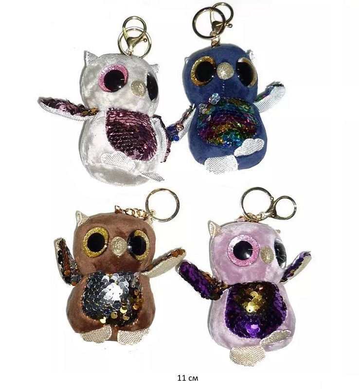 им Сова арт. 238811-57 Цвета микс с пайетками брелок 11 см в пак.)Аксессуар станет не только стильным дополнением к сумке, телефону или ключам, но и прекрасным подарком. Совушку можно использовать как игрушку для ребёнка, которая добавит нотку веселья и радости в повседневную жизнь.