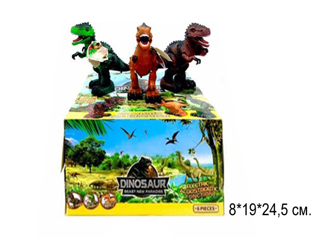 Динозавр арт. 168-6A На батар. звук, ходит, глаза светятся (6 шт.) шоубокс•Игрушка выглядит и издаёт звуки как настоящее доисторическое животное! Динобот передвигается вперёд, издает рёв динозавра, светятся глаза.