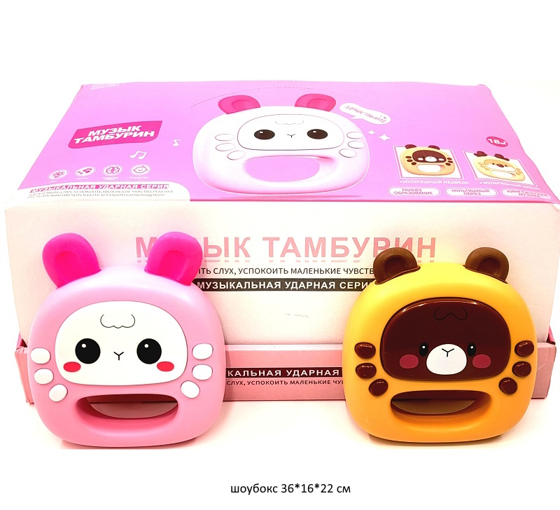 • Игрушка арт. 335-80 Развив. "Зверюшка-тамбурин" ассорти на бат. муз. (12 шт.) шоубокс_