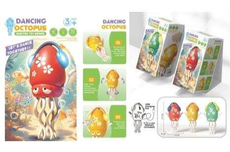 • Кальмар арт. 2855-805 В наушниках цвета микс на бат. свет, танец в кор.