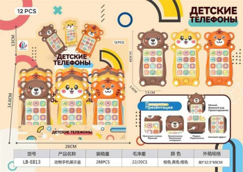 • Телефон арт. LB-E813-805 Зверюшка цвета микс муз. на бат. (12 шт.) шоубокс