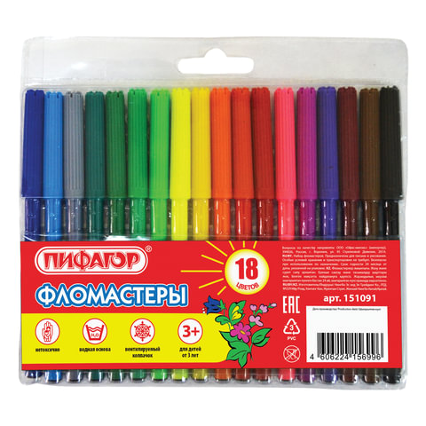 Производитель: Китай.29.07 руб. 58.14 руб. - кс_Фломастеры ПИФАГОР, 18 цветов, вентилируемый колпачок, 151091×кс_Фломастеры ПИФАГОР, 18 цветов, вентилируемый колпачок, 151091Фломастеры подарят отличные впечатления в процессе раскрашивания каждому ребенку. Рисование способствует развитию мелкой моторики рук у детей, координации движений кистей и пальцев, что благоприятно влияет на творческое мышление.