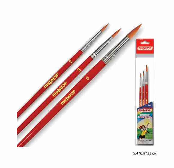 кс_Кисти арт. 200226 ПИФАГОР набор 3 шт. СИНТЕТИКА круглые № 2, 3, 5 пакет с европодвесом