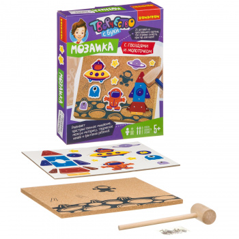 - Набор для творчества BONDIBON. Мозаика с гвоздями и молоточком (прессованный картон). Космос×Набор для творчества BONDIBON. Мозаика с гвоздями и молоточком (прессованный картон). КосмосУвлекательная игра предполагает создание картины из деталей, прикрепляемых к основе с помощью гвоздиков. Особых усилий не требуется, детали содержат отверстия, остается лишь вставить гвоздики и прибить молотком. Также легко разобрать созданные картинки.
