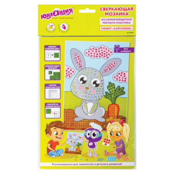 - Набор для творчества "Сверкающая мозаика из мягкого пластика", "Зайчонок", 21х29 см, ЮНЛАНДИЯ, 66236×Набор для творчества "Сверкающая мозаика из мягкого пластика", "Зайчонок", 21х29 см, ЮНЛАНДИЯ, 66236Сверкающая мозаика из мягкого пластика EVA ЮНЛАНДИЯ "Зайчонок" - это весёлый и занимательный способ развития мелкой моторики, аккуратности и цветового восприятия ребёнка. Все элементы в составе самоклеящиеся, для работы не требуются ножницы и клей.75.79 руб.151.58 руб.