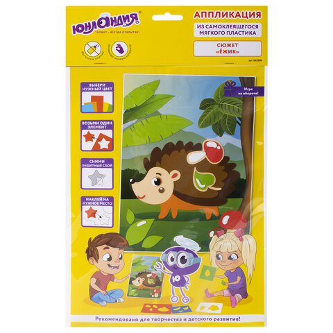 Аппликация из мягкого пластика EVA ЮНЛАНДИЯ "Ёжик" - это весёлый и занимательный способ развития мелкой моторики, аккуратности, цветового восприятия и фантазии ребёнка. Все элементы в составе самоклеящиеся, для работы не требуются ножницы и клей.