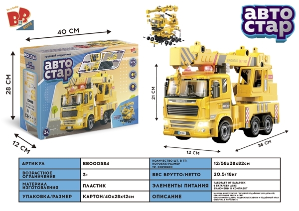 Конструктор арт. 1924" Кран на бат. в кор. 40*28*12 /12шт.//бл./