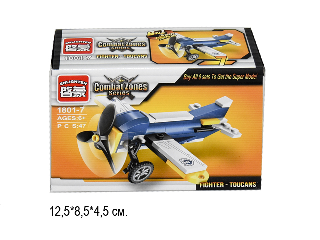 99.58 руб. 199.15 руб. - Конструктор арт. 1418-8" Самолет (8 шт.)/шоубокс 21*9*4,5/144шт.//бл./×Конструктор арт. 1418-8" Самолет (8 шт.)/шоубокс 21*9*4,5/144шт.//бл./Конструктор состоит из 101 детали, из которых можно собрать военный самолет. Серия состоит из 8 разных наборов, которые можно объединить между собой и собрать огромный боевой танкер.