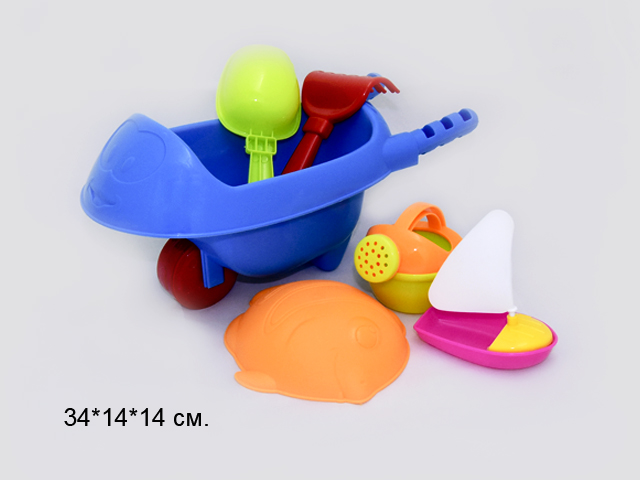 Песочный набор арт. 382 Тачка с инструментами и фигурками в сет._/48 шт./
