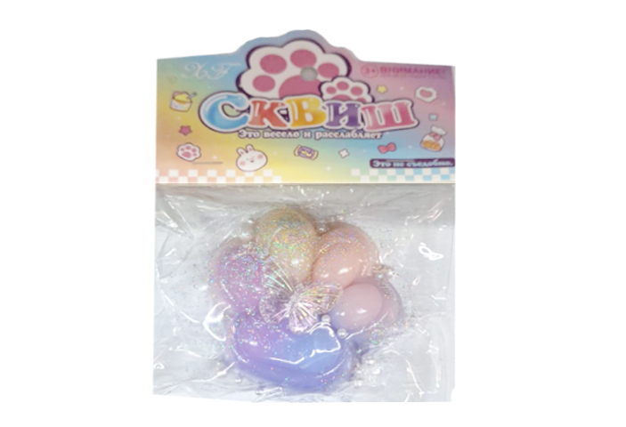 Антистресс арт. JJ234-209 Лапка радужная с бабочкой блестки мальтоза (16 шт.) в пак.