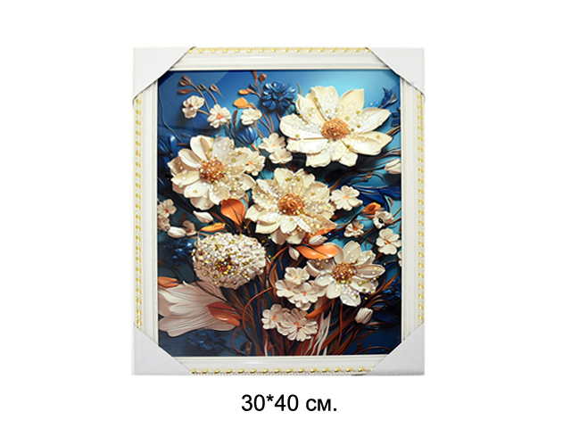 Картина с кристаллами арт. 502830 Букет белых цветов 30*40 в пак.