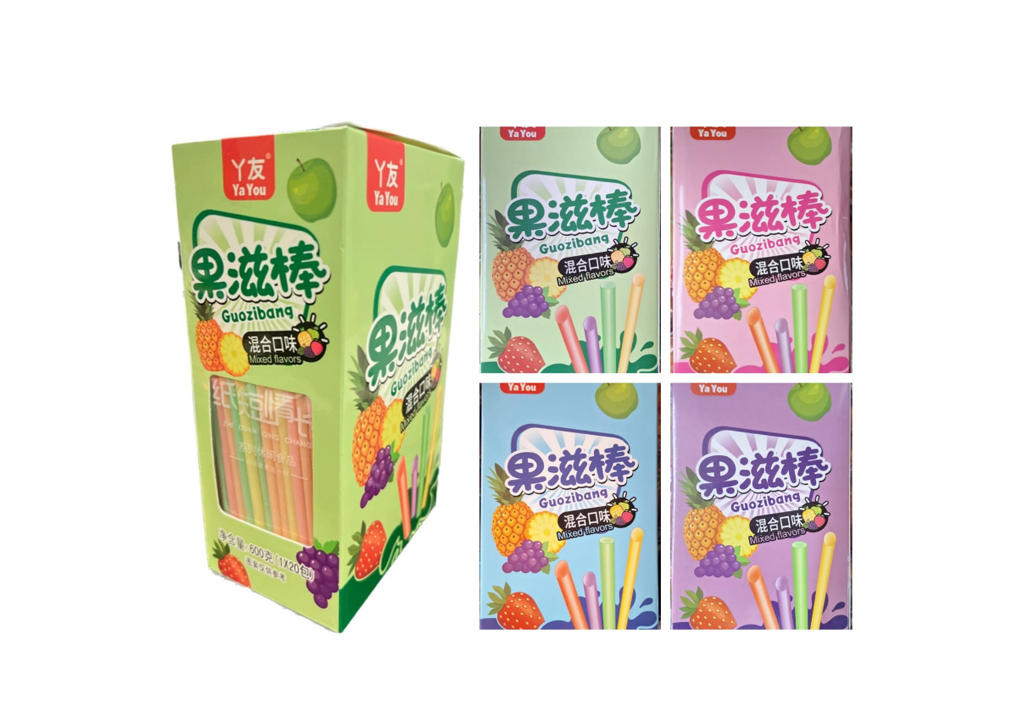 Конфета арт. 621467 Жевательная трубочка вкусы микс 30 г 20 шт. в кор.#'