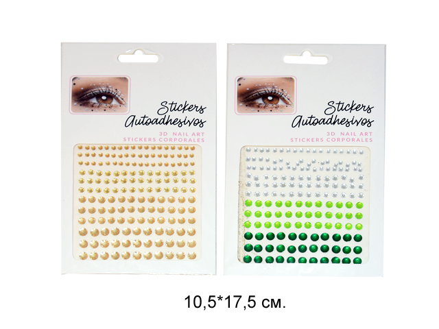 Наклейки для лица арт. 709024 Стразы зеленые форма в ассортименте на листе