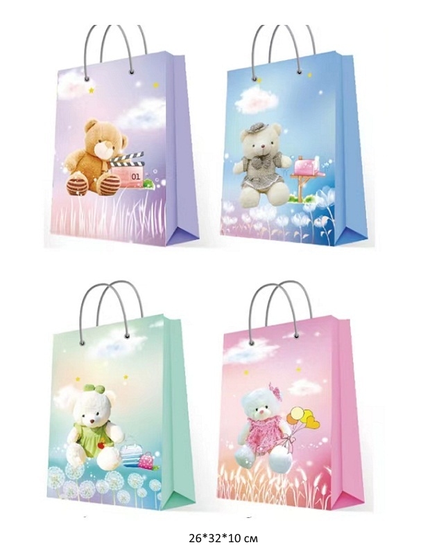 Пакет подарочный арт. 111-1 "Медведь" в ассортименте 26*32*10 см_