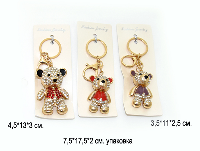 Брелок арт. 805273 Медведь цвета микс стразы металл (12 шт.) в пак.