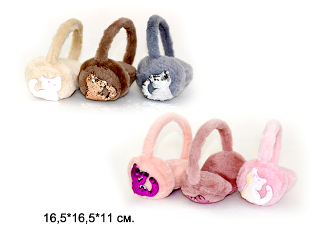 Наушники меховые арт. D1-6581-709 Кот стразы цвета микс 1 шт. в пак.