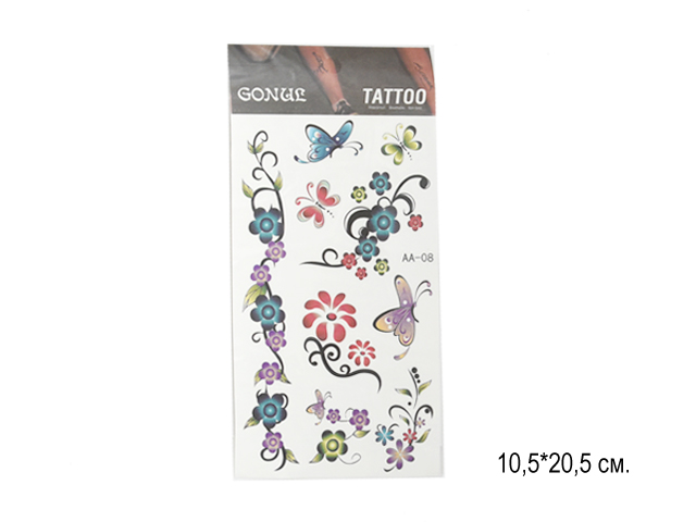 Набор Тату арт. AA-08 Цветы бабочки (12шт.) в пак.